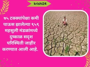 ७५ टक्क्यांपेक्षा कमी पाऊस झालेल्या ९५९ महसुली मंडळांमध्ये दुष्काळ सदृश परिस्थिती जाहीर करण्यात आली आहे. November 10, 2023