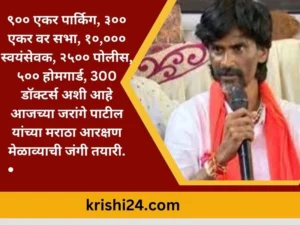 ९०० एकर पार्किग, ३०० एकर वर सभा, १०,००० स्वयंसेवक, २५०० पोलीस, ५०० होमगार्ड, 300 डॉक्टर्स अशी आहे आजच्या जरांगे पाटील यांच्या मराठा आरक्षण मेळाव्याची जंगी तयारी. October 13, 2023
