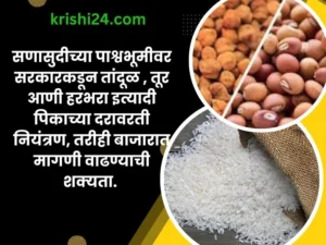 सणासुदीच्या पाश्वभूमीवर सरकारकडून तांदूळ , तूर आणी हरभरा इत्यादी पिकाच्या दरावरती नियंत्रण, तरीही बाजारात मागणी वाढण्याची शक्यता. October 13, 2023