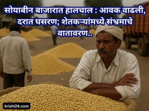 Soyabin bajarbhav : सोयाबीन बाजारात हालचाल आवक वाढली, दरात घसरण; शेतकऱ्यांमध्ये संभ्रमाचे वातावरण.. August 18, 2025