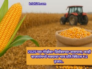 Mka bajarbhav : 2025 च्या नोव्हेंबर–डिसेंबरच्या आसपास, काही बाजारांमध्ये मक्याचा भाव प्रति क्विंटल ₹ 2 हजार.. December 6, 2025