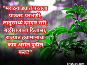 Maharashtra Rain : मराठवाड्यात परतला पाऊस: परभणी, लातूरमध्ये दमदार सरी; बळीराजाला दिलासा, राज्यात हवामानाचा काय असेल पुढील कल? July 22, 2025