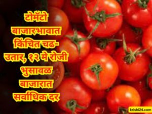 Tomato bajarbhav : टोमॅटो बाजारभावात किंचित चढ-उतार, १२ मे रोजी भुसावळ बाजारात सर्वाधिक दर… May 12, 2025