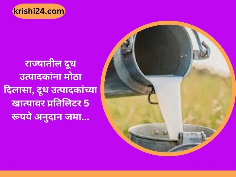 राज्यातील दूध उत्पादकांना मोठा दिलासा, दूध उत्पादकांच्या खात्यावर प्रतिलिटर 5 रूपये अनुदान जमा…
