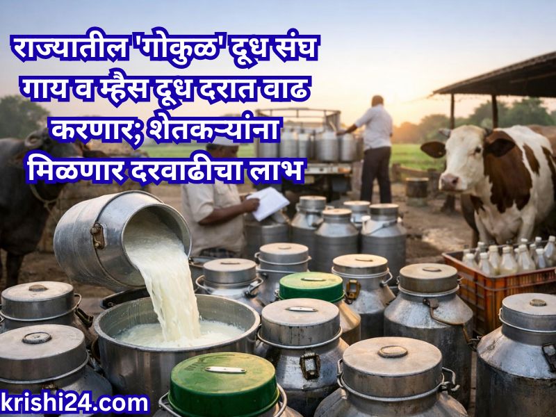 Gokul’ milk : कोल्हापूर जिल्हा सहकारी दूध उत्पादक संघ (गोकुळ), कोल्हापूर यांनी दूध उत्पादकांना प्रोत्साहन देण्यासाठी म्हैस दूध खरेदी दरात प्रतिलिटर एक रुपया आणि गाय दूध खरेदी दरात दोन रुपयांची वाढ करण्याचा महत्त्वपूर्ण निर्णय घेतला आहे. यासोबतच म्हैस दूध विक्री दरातही दोन रुपयांची वाढ प्रस्तावित असून, संचालक मंडळाच्या बैठकीनंतर शनिवारपासून अंमलबजावणी अपेक्षित आहे. पूर्वी अनुदानवाढीमुळे दूध संकलनात मोठी वाढ झाली होती; मात्र सध्या संकलन घटल्याने उत्पादकांना आर्थिक दिलासा देण्याच्या दृष्टीने हा निर्णय घेण्यात आला आहे. या बदलामुळे उत्पादक आणि ग्राहक यांच्यात संतुलन राखत दुग्धव्यवसायाला स्थैर्य व चालना मिळण्याची अपेक्षा व्यक्त होत आहे.