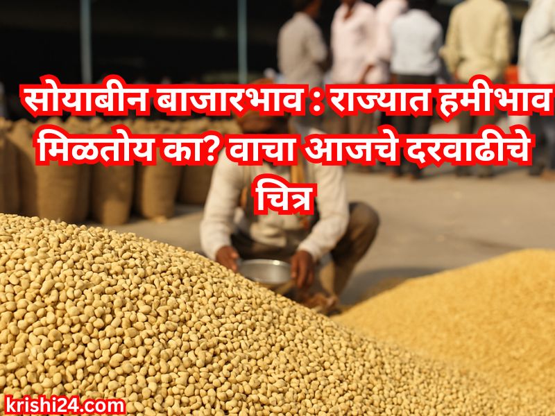 Soyabin bajarbahv : राज्यातील सोयाबीन उत्पादक शेतकऱ्यांसाठी आजचा दिवस काहीसा मिश्र आहे. विविध बाजार समित्यांमध्ये दरात चढ-उतार दिसून येत असून काही ठिकाणी हमीभावाच्या आसपास दर मिळत आहेत, तर काही भागांत दर घसरणीचा कल दिसतो. सोयाबीन हे महाराष्ट्रातील महत्त्वाचे नगदी पीक असून दरवाढीचा थेट परिणाम शेतकऱ्यांच्या उत्पन्नावर होतो.