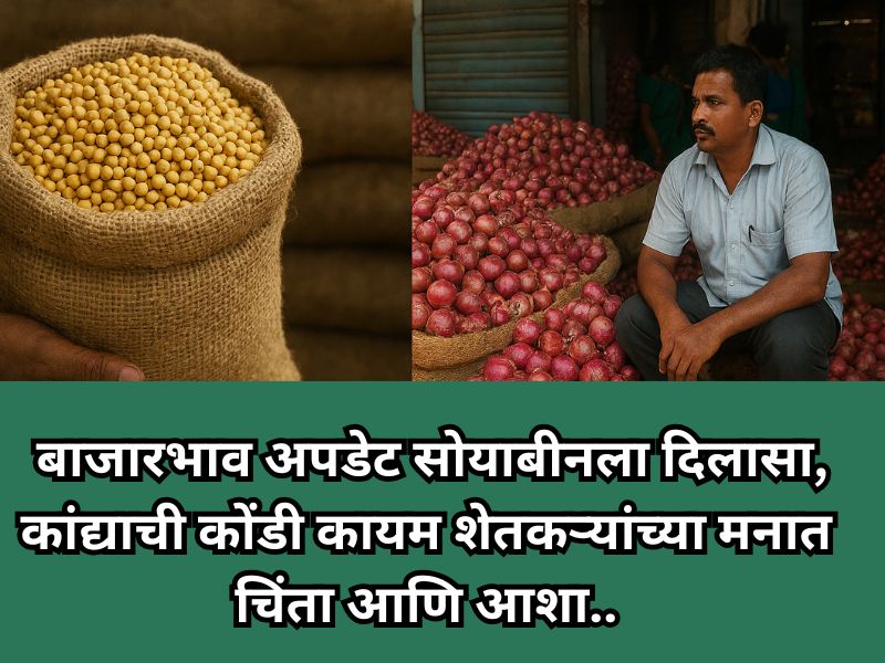 📌 निष्कर्ष: बाजारात संमिश्र स्थिती, शेतकऱ्यांनी संयम आणि नियोजन आवश्यक आजच्या बाजारभावात सोयाबीनने दिलासा दिला असला तरी कांद्याच्या बाबतीत अजूनही अनिश्चितता आहे. शेतकऱ्यांनी बाजारातील स्थितीचा अभ्यास करून योग्य वेळी विक्री करणे गरजेचे आहे. सरकारकडून साठवणूक आणि वाहतूक सुलभतेसाठी उपाययोजना अपेक्षित आहेत.