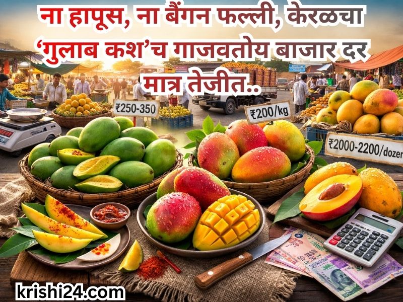 Mango Market : यंदाच्या आंबा बाजारात बदलत्या हवामानाचा स्पष्ट परिणाम दिसून येत असून, केरळमधील ‘गुलाब कश’ने ग्राहकांचे लक्ष वेधून घेतले आहे. अवकाळी पावसामुळे Gujarat मधील ‘केसर’ आंब्याचा पुरवठा उशिरा होण्याची शक्यता असल्याने बाजारातील समतोल बिघडला आहे. सध्या दररोज सुमारे २० पेट्या Jalgaon येथे दाखल होत असून, या आंब्याला २५० ते ३५० रुपयांदरम्यान दर मिळत आहे. ‘केसर’ तसेच Vijayawada येथील ‘बदाम’ आंबा बाजारात येईपर्यंत दर तेजीत राहण्याची शक्यता विक्रेत्यांनी व्यक्त केली आहे. बदलत्या पुरवठा-साखळी आणि हवामानाच्या पार्श्वभूमीवर बाजारातील ही घडामोड ग्राहक आणि व्यापाऱ्यांसाठी महत्त्वाची ठरत आहे.