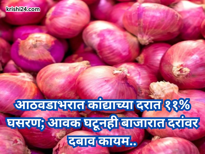 उत्पादन खर्च वाढलेला असताना कांद्याच्या दरात सुरू असलेली घसरण शेतकऱ्यांसाठी आर्थिक अडचणी वाढवणारी ठरत असून, सध्याची बाजारस्थिती त्यांच्यासाठी चिंताजनक बनली आहे. आगामी काळात कांद्याची आवक आणखी कमी झाल्यास किंवा निर्यात धोरणात सकारात्मक बदल झाल्यास दरांना काही प्रमाणात आधार मिळण्याची शक्यता तज्ज्ञ व्यक्त करीत आहेत. मात्र सध्या राज्यातील कांदा बाजारात आवक घटूनही दर घसरल्याचे चित्र कायम असून, पुढील आठवड्यातील बाजारस्थितीकडे शेतकरी आणि व्यापारी दोघांचेही लक्ष लागून आहे, कारण त्यावर पुढील आर्थिक नियोजन अवलंबून राहणार आहे.