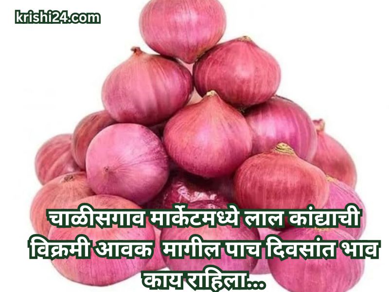 Onion rate : चाळीसगाव मार्केटमध्ये लाल कांद्याची विक्रमी आवक मागील पाच दिवसांत भाव काय राहिला…