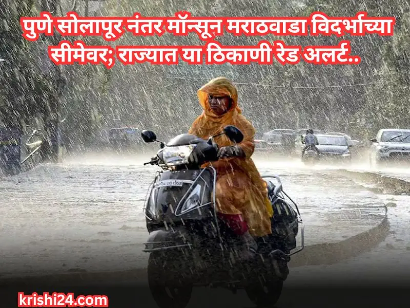 Red alert : आज २७ मे २०२५ रोजी सकाळपर्यंतचा हवामान विभागाचा अहवाल पाहता, नैऋत्य मोसमी (monsoon rain 2025) पावसाने महाराष्ट्रात आपली सुरुवात केली असून तो मुंबई, पुणे, सोलापूर, कलबुर्गी, महबूबनगर, कवलीपर्यंत पोहोचला आहे. यामुळे महाराष्ट्रातील कोकण, पश्चिम महाराष्ट्र, मराठवाड्याचा काही भाग तसेच विदर्भाच्या काही भागांना मॉन्सूनचा स्पर्श झाला आहे.
