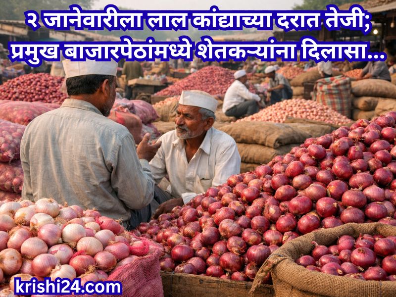 Onion rate : २ जानेवारीला लाल कांद्याच्या दरात तेजी; प्रमुख बाजारपेठांमध्ये शेतकऱ्यांना दिलासा…