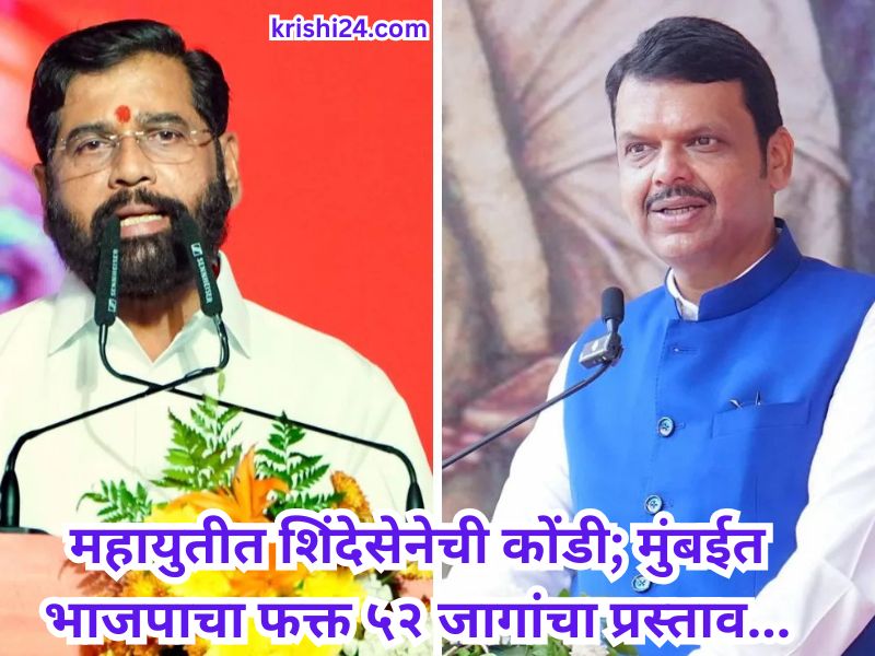 Eknath shinde : महायुतीत शिंदेसेनेची कोंडी; मुंबईत भाजपाचा फक्त ५२ जागांचा प्रस्ताव…
