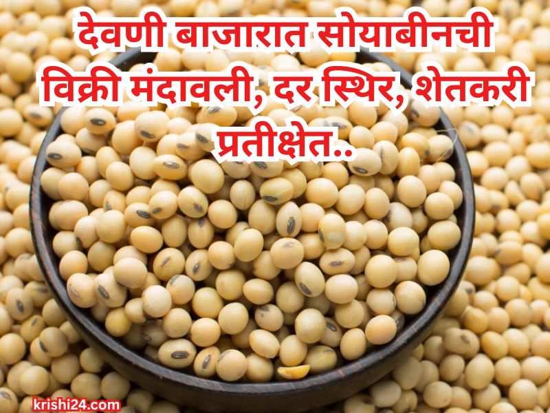 Soyabin rate : सोयाबीनच्या दरात अपेक्षित वाढ होत नसल्याने शेतकऱ्यांनी विक्रीचा कल कमी केला आहे. याचाच परिणाम म्हणून देवणी कृषी उत्पन्न बाजार समितीत २१ डिसेंबर रोजी केवळ ८२ क्विंटल इतकीच आवक नोंदविण्यात आली. ही आवक गेल्या काही दिवसांतील सर्वात अल्प मानली जात आहे.