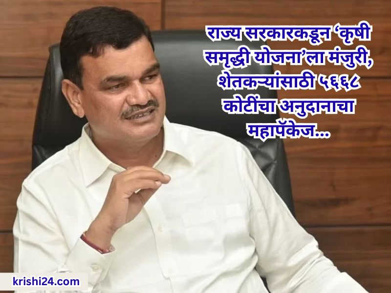 कृषी मंत्री दत्तात्रय भरणे यांनी दिलेल्या माहितीनुसार, “कृषी समृद्धी योजना” यशस्वीपणे पूर्णत्वास नेण्यासाठी मुख्यमंत्री देवेंद्र फडणवीस, उपमुख्यमंत्री एकनाथ शिंदे आणि उपमुख्यमंत्री अजित पवार यांचे विशेष सहकार्य लाभले आहे. या योजनेअंतर्गत ट्रॅक्टर चलित रुंद सरी वरंबा (BBF) यंत्र, वैयक्तिक शेततळे, शेतकरी सुविधा केंद्र उभारणी आणि मुख्यमंत्री शेतकरी ड्रोन हे चार महत्त्वाचे घटक समाविष्ट करण्यात आले आहेत. योजनेसाठी एकूण ५,६६८ कोटी रुपयांचा निधी मंजूर करण्यात आला असून, त्यात २५ हजार रुंद सरी वरंबा यंत्रांसाठी १७५ कोटी, १४ हजार वैयक्तिक शेततळ्यांसाठी ९३ कोटी, शेतकरी सुविधा केंद्र उभारणीसाठी ५ हजार कोटी आणि ५ हजार ड्रोनसाठी ४०० कोटी रुपयांचा समावेश आहे. तसेच कृषी यांत्रिकीकरण योजनेंतर्गत विविध शेतीसाठी उपयुक्त यंत्रसामग्री पुरविणे, जैविक निविष्ठ निर्मिती केंद्र, मृद परीक्षण प्रयोगशाळा, प्लास्टिक अस्तरीकरण, एकात्मिक कीड नियंत्रण आणि अन्नद्रव्य व्यवस्थापन यांसारख्या उपक्रमांनाही चालना देण्यात येणार आहे. हा सर्वांगीण उपक्रम राज्यातील शेतीला आधुनिकतेच्या दिशेने नेणारा ठरेल, असा विश्वास त्यांनी व्यक्त केला.