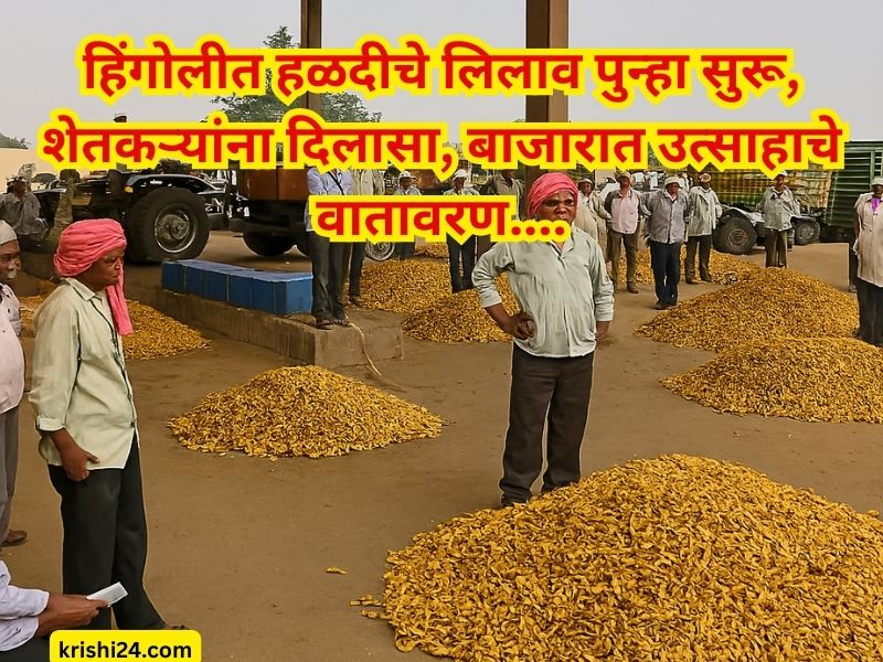 Turmeric auction : हिंगोलीत हळदीचे लिलाव पुन्हा सुरू, शेतकऱ्यांना दिलासा, बाजारात उत्साहाचे वातावरण….